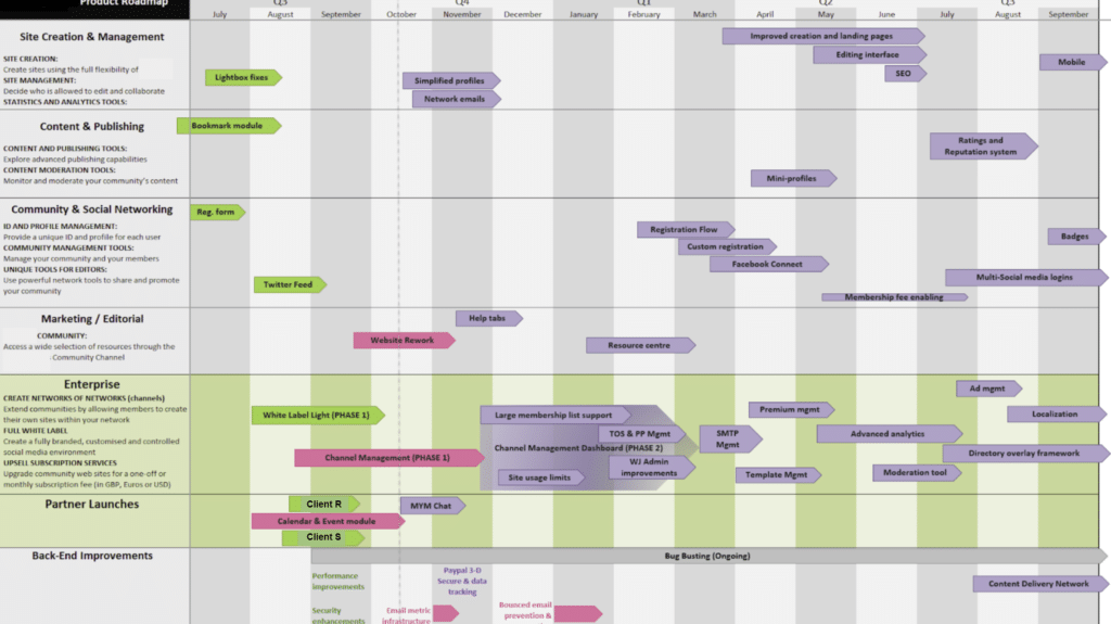 Unfortunately, our time was dominated by the work in the green strip, what we called ‘Enterprise’ and ‘Partner launches’. These were things that we were doing to close specific deals by specific dates.