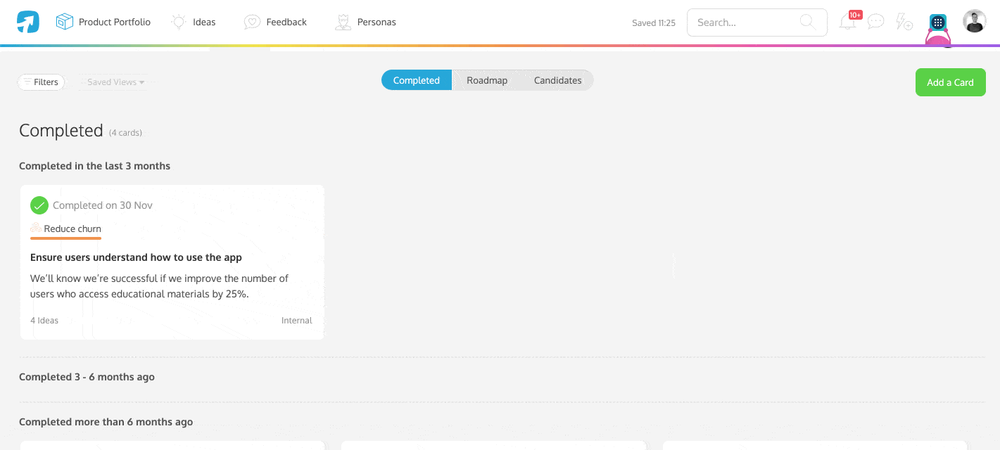 There is always space at every level in ProdPad to record how effective your bets were. This starts at the idea level.