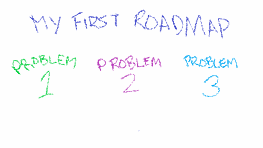 My First Roadmap, written in crayon, with problems in different colors. There's nothing wrong with starting simple.